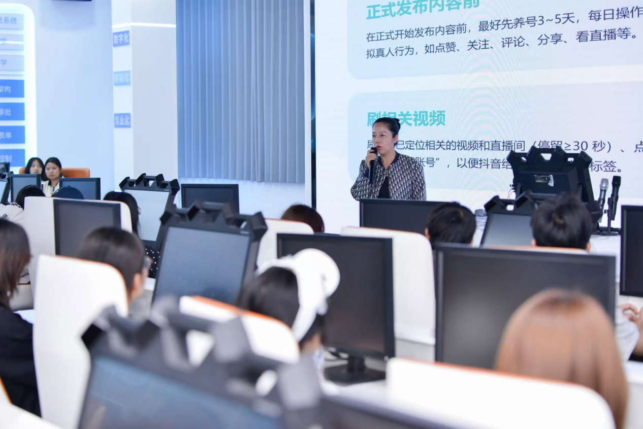 学院持续改善实践教学条件,新建实训室4间,新增面积312.15㎡,设备总值达104万元。同步投入64万余元引入跨境电子商务岗课赛证综合实训平台、网络营销实战实训平台两大教学系统。学院依托第二期省级“双高”跨境电子商务专业群建设任务,启动建设集人才培养、技术研发、社会服务、考证服务于一体的开放型产教融合实践中心,同步推进虚拟仿真实训基地建设和生产性实习实训改革。该中心将集成跨境电子商务全流程虚拟仿真系统,实现教学与产业需求深度对接,为学生提供“虚实结合、学做一体”的全新实践平台,全面提升人才培养质量。